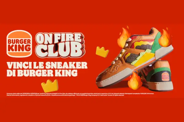 Partecipa al concorso On Fire Club di Burger King e vinci fantastiche sneaker! Con acquisti di almeno 10€ nei punti vendita Burger King, tramite app, drive o delivery, potrai partecipare all’estrazione istantanea di un paio di sneaker Burger King! Inoltre, riceverai un buono sconto di €2,20 per patatine fritte.